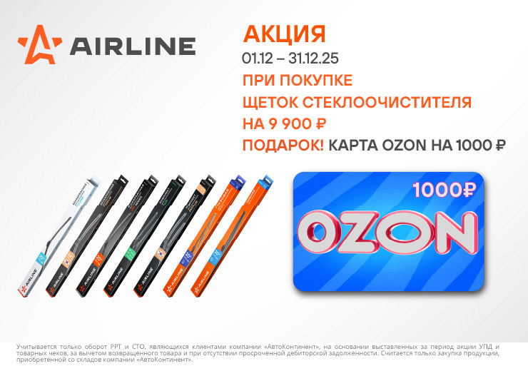 Карты Озон за покупку щеток стеклоочистителя Airline!