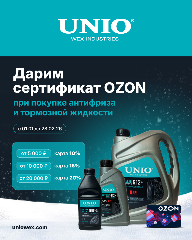 Сертификаты Ozon за закупку антифриза и тормозной жидкости UNIO!