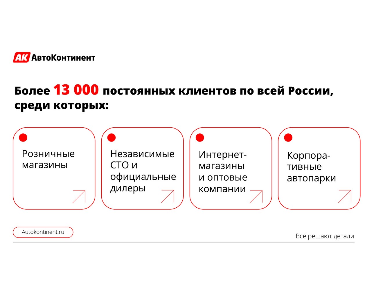 • Стабильные партнёры: свыше 13 000 постоянных клиентов по России