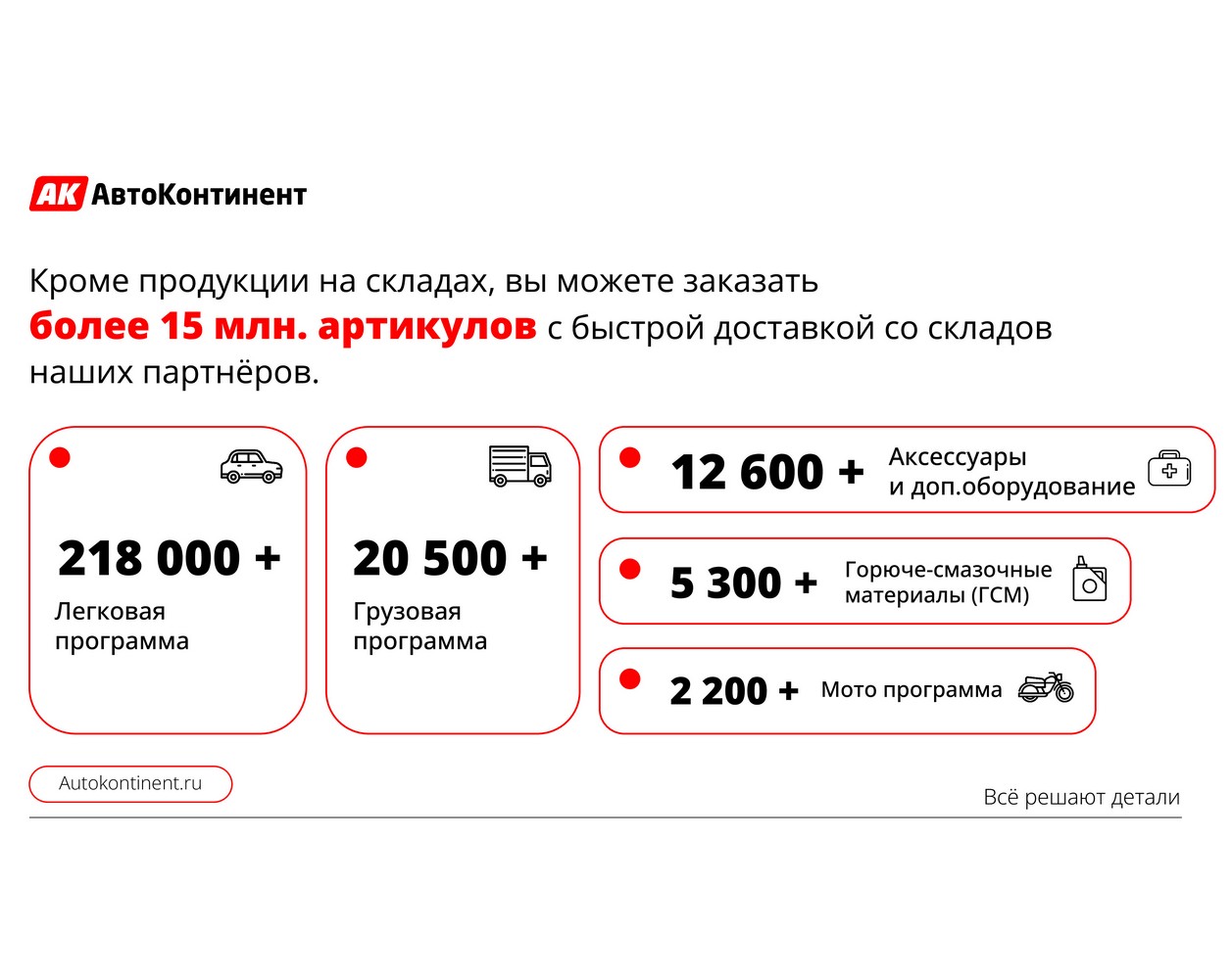 • Широкий ассортимент: оригинальные запчасти и аксессуары для легковых, коммерческих авто и мототехники